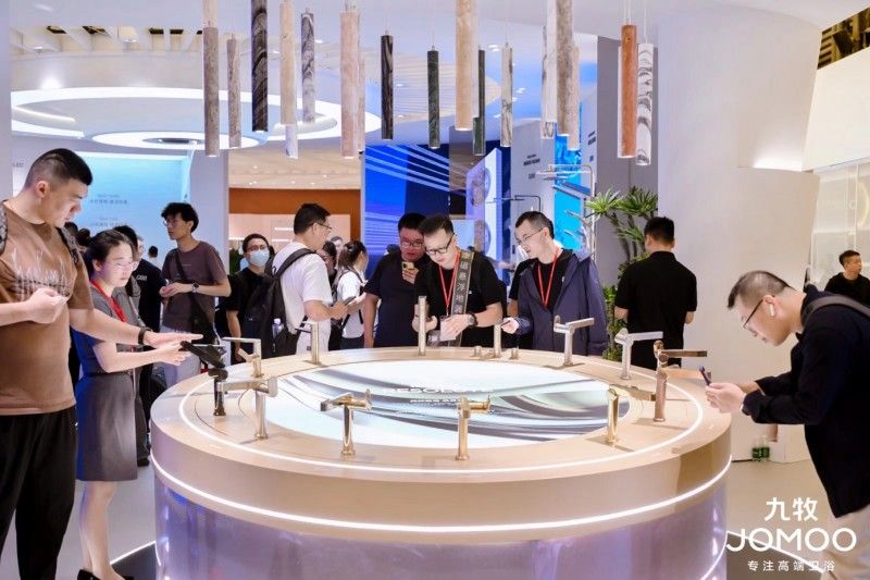 國(guó)貨品牌九牧展區(qū)則圍繞“智能、綠色、顏值、健康”的理念,分設(shè)智能館、顏值館、綠色健康館,核心主展區(qū)屏幕環(huán)形聯(lián)動(dòng),通過VR技術(shù)與背景音效的完美結(jié)合,觀眾得以沉浸于智能衛(wèi)浴的奇妙世界,成為眾多科技、數(shù)碼、時(shí)尚、生活類達(dá)人博主打卡的必選項(xiàng)和聚集地。